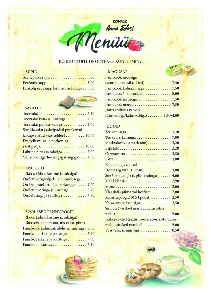 Anna Edasi perekohvik on Tartus tegutsenud aastast 2010. Oleme oma tööle väga pühendunud ja just see on meil aidanud leida kindla koha Tartu toitlustusturul. Anna Edasi on ka kogukonnakohvik, pelgupaik, teine kodu, peatuspaik ja maamärk Karlovas.